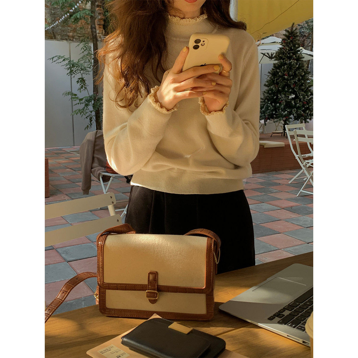5siss Korean version of the all-match half-high collar fake two-piece knitted sweater feminine lace lace top cardigan