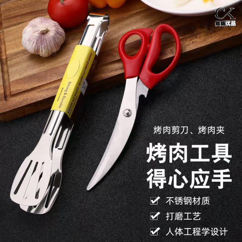 Frying Steak Tool Suit Stainless Steel Roast Scissors Grilled Meat Clip Brush Package Commercial Cut Roast Beef Steak Noodle-Taobao