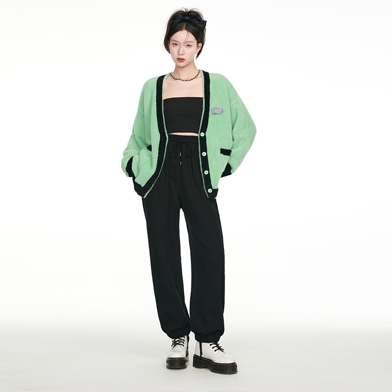ANDYET AD1 22SS super soft color contrast small fragrance imitation mink fur cardigan spring lazy V-neck sweater