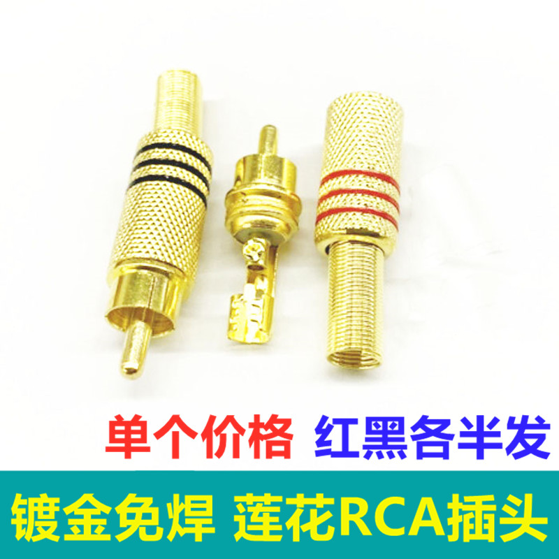 4 clothes-free gilded gold plated rca lotus head plug sound power amplifier speaker sound box AV audio wire connecting head