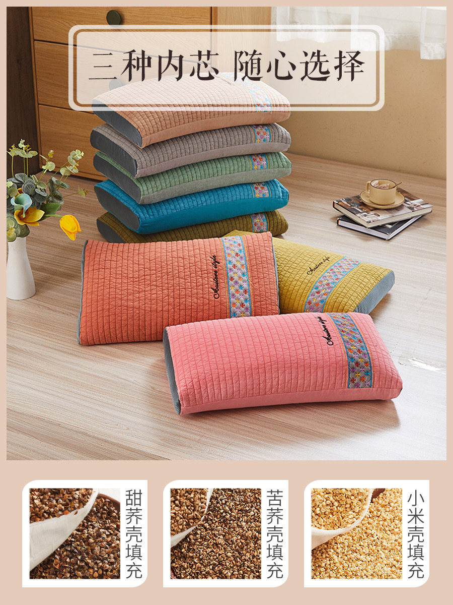 Eloline adult buckwheat pillow Korean single sleep low pillow student dormitory small thin neck pillow with pillowcase