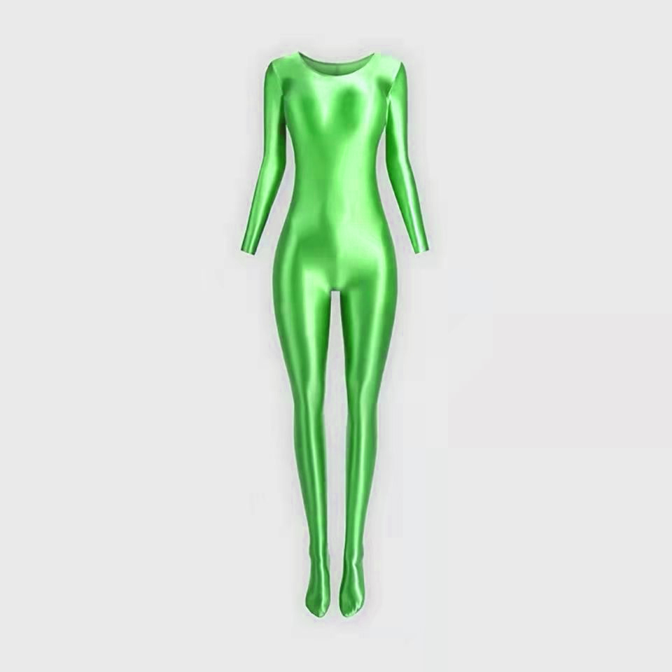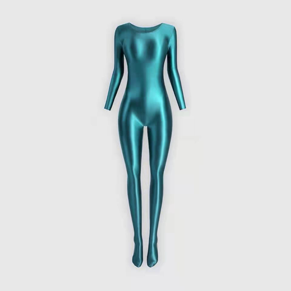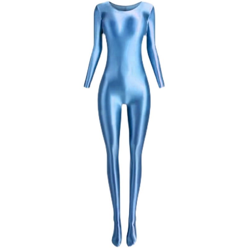 Sexy outer wear stretch luster zipper tights bodybuilding bodybuilding sports full body jumpsuit pants women's long sleeves and feet