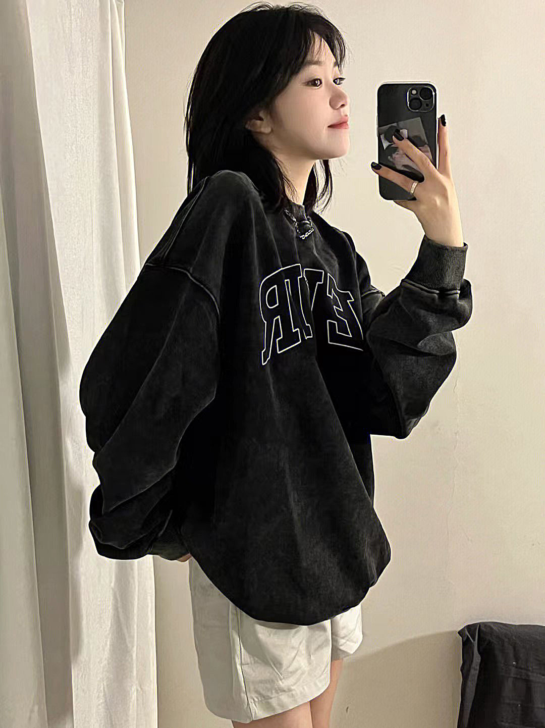 Autumn and winter large size women's clothing national tide basic American letter printing high street washed do the old plus velvet pullover round neck thick cotton T