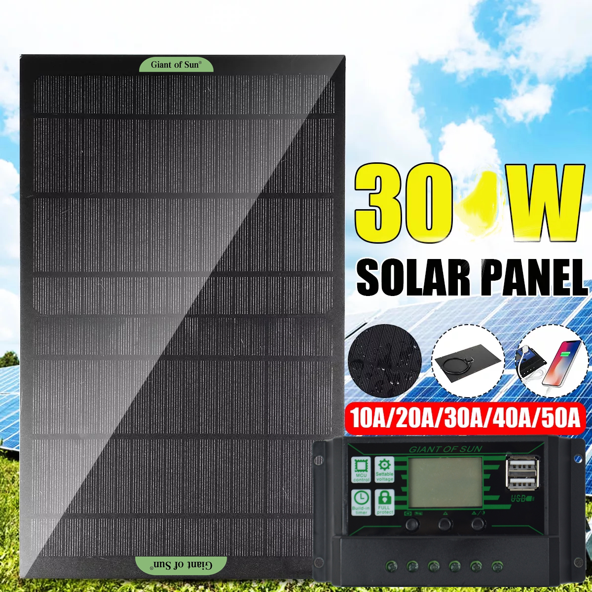 Monolithic Solar Panel Black Solar Panel Plus 10A Controller Black Solar Panel Plus 20A Controller Black Solar Panel Plus 30A Controller Black Solar Panel Plus 50A Controller Black