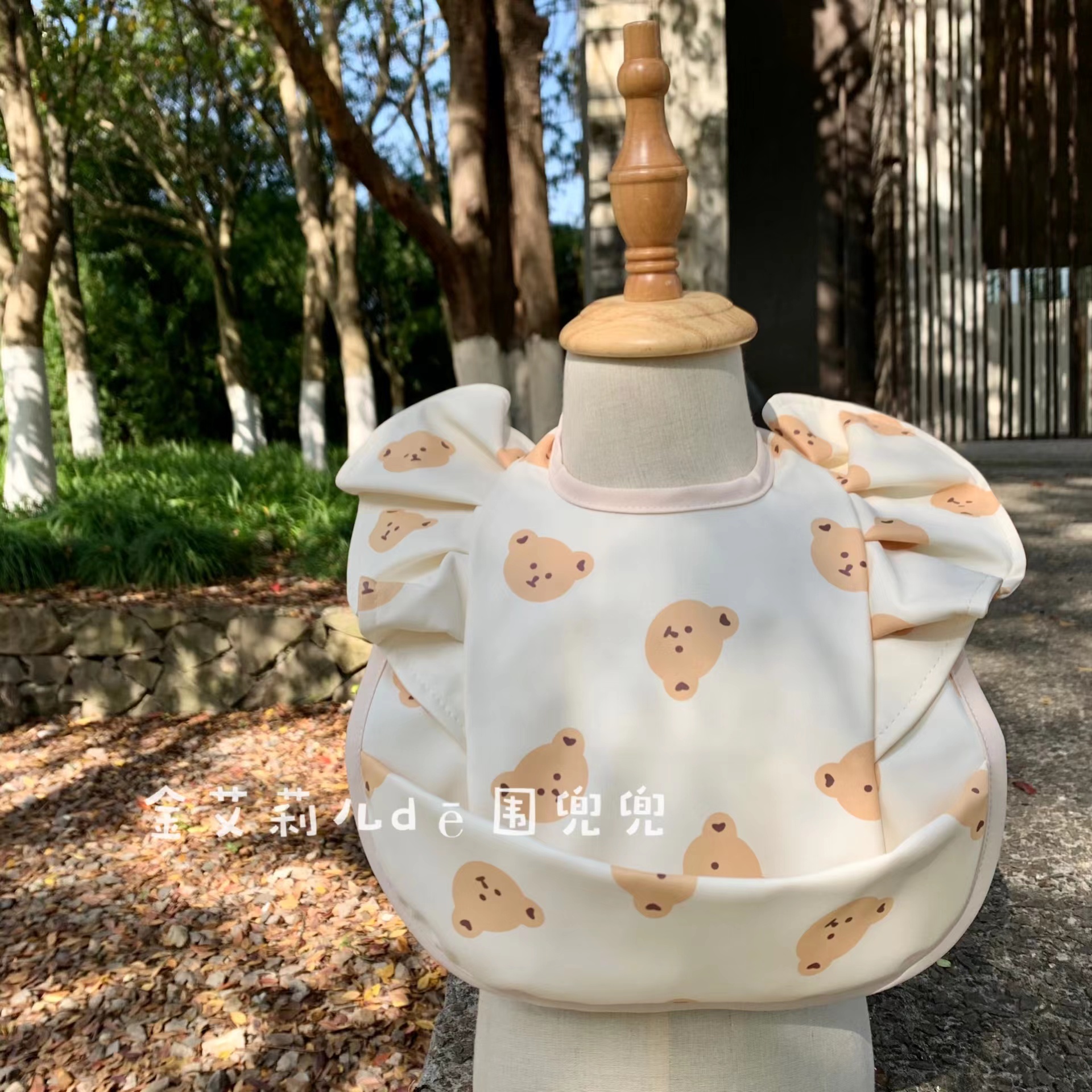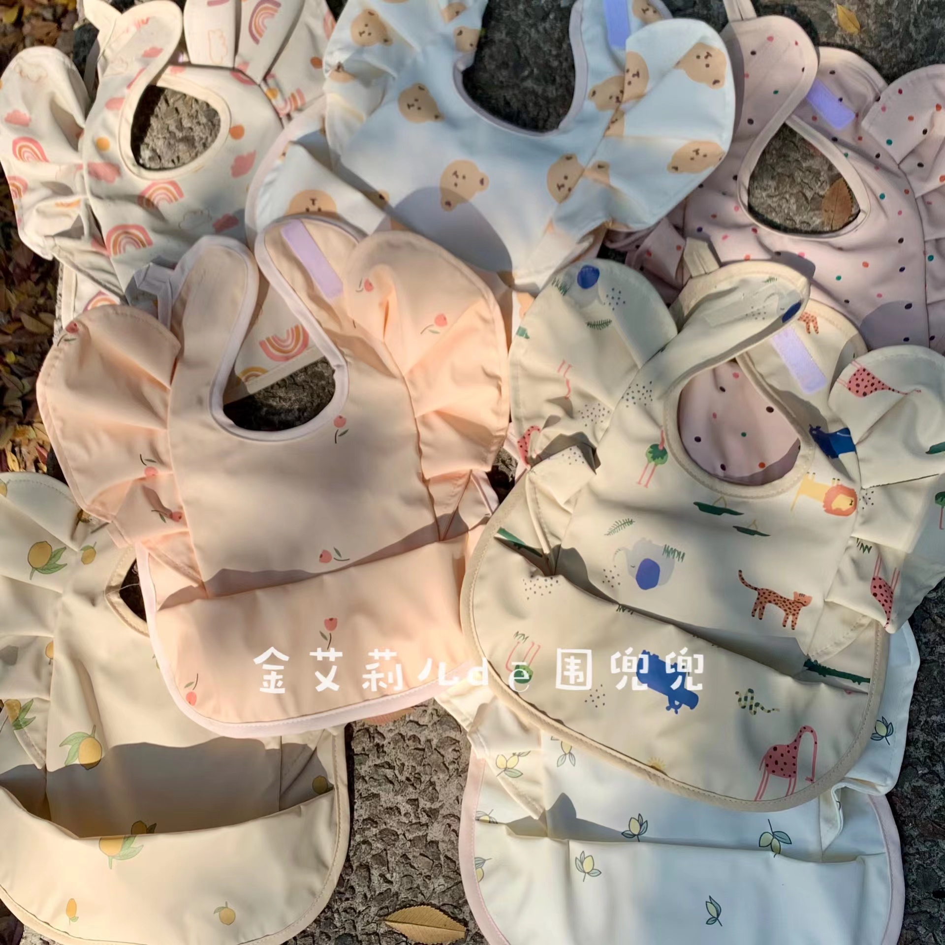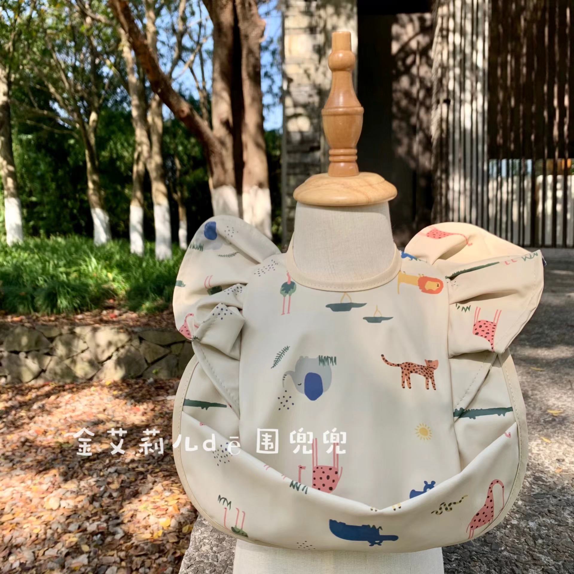 "Kim Ariel's D for example around the hood" Nordic Wind Ins Angels Winged Waterproof Flowers Dinosaur Baby Dinner Bib PU Leather