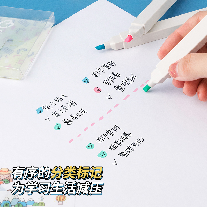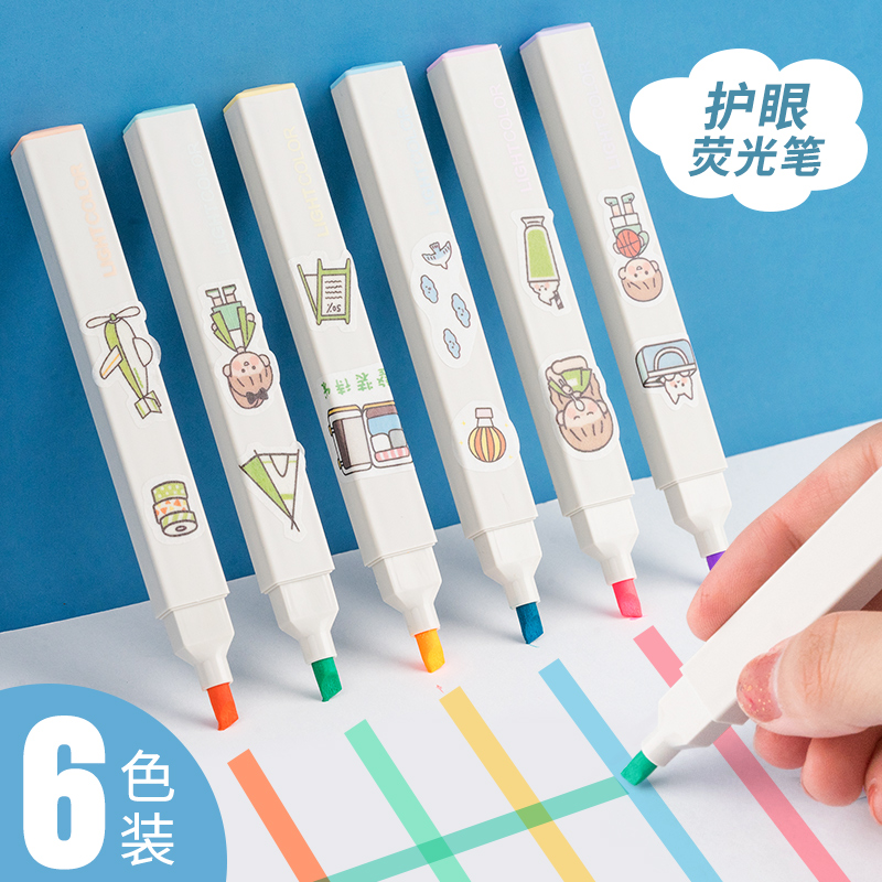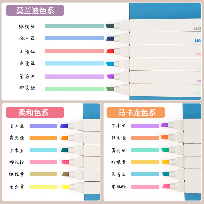 Fluorescent pen marker pen student with morandi macaron light color series notes pen silver light multicolored soft head color pen with notes special large capacity eye care big capacity ying light hand bill