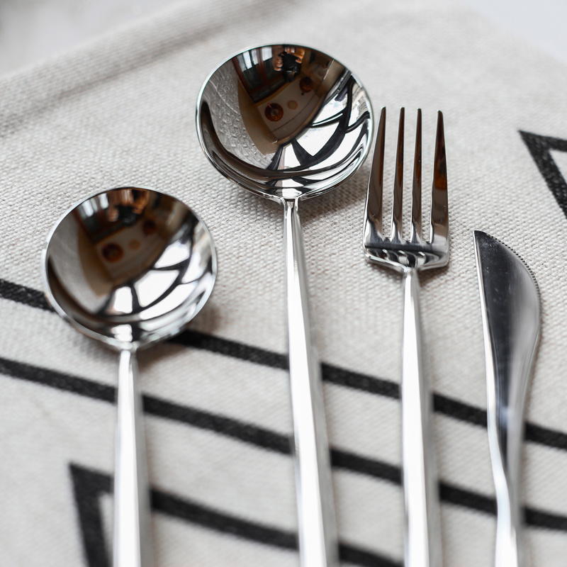 L88-Western food knife, fork, spoon, four-piece set of primary color mirror surface I67- Dessert spoon primary color mirror surface J89-Main meal knife, fork, spoon and chopsticks set primary color mirror surface A29-Mixing spoon primary color mirror surface F68-Dessert