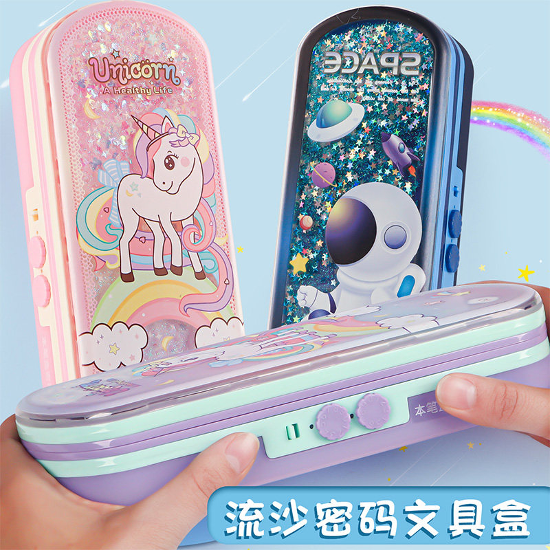 Multifunctional code lock stationery box student with pencil case elementary school boy large capacity creative personality kindergarten children boys girls 1-3 grades boys and girls quicksand into the pen box pen bag