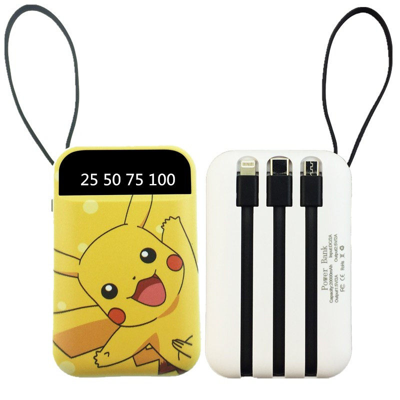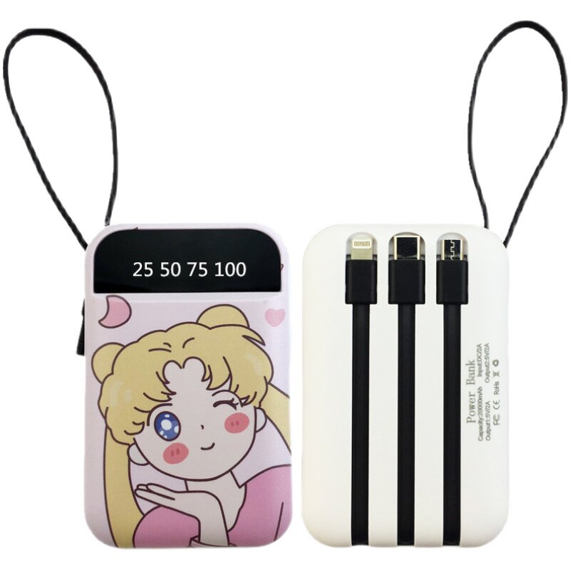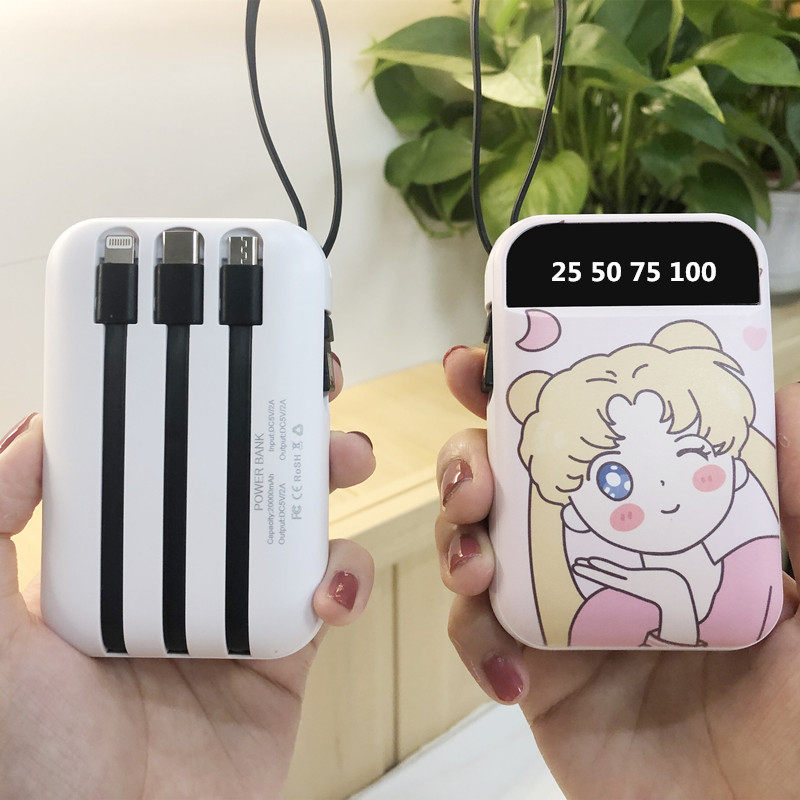 Mobile charger 20,000 mAh ultra-thin compact portable girl cute self-contained line three-in-one large-capacity mini 20000