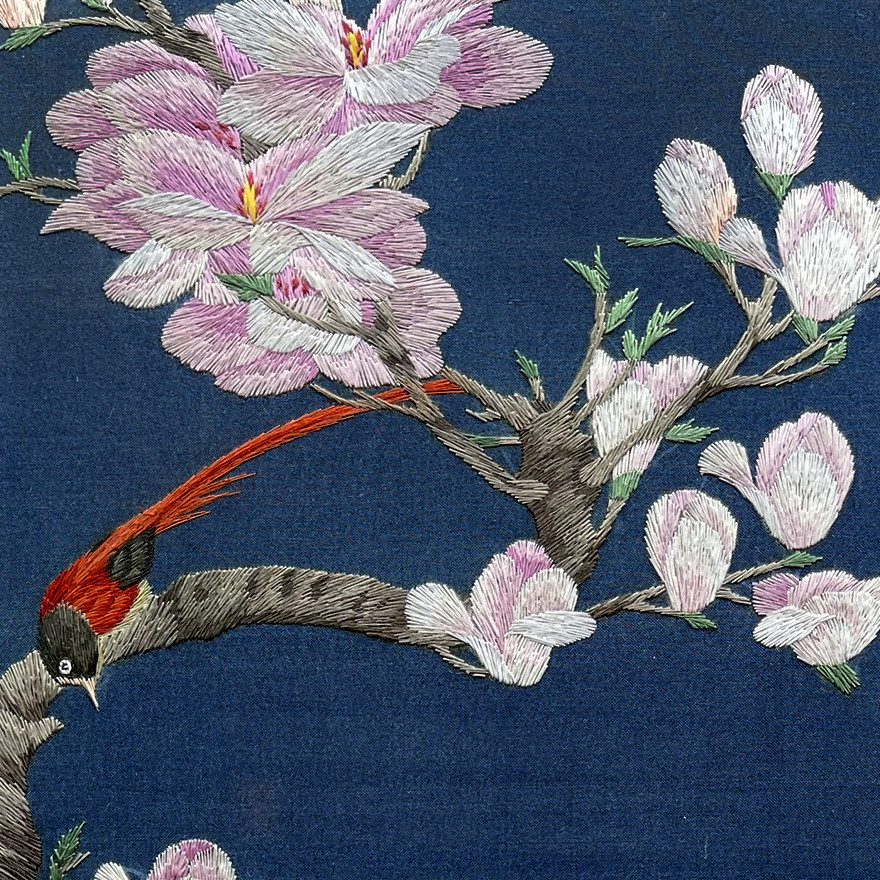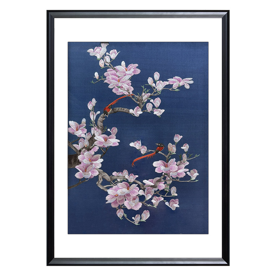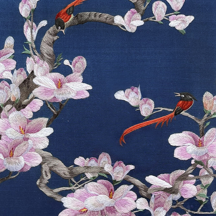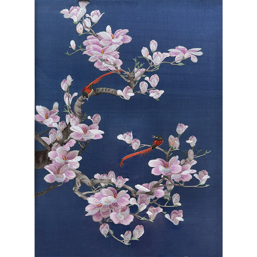 Artisan Su embroidery "Yulan Shuangbird" Home Residence Decoration Hanging Painting Embroidery Genuine Silk