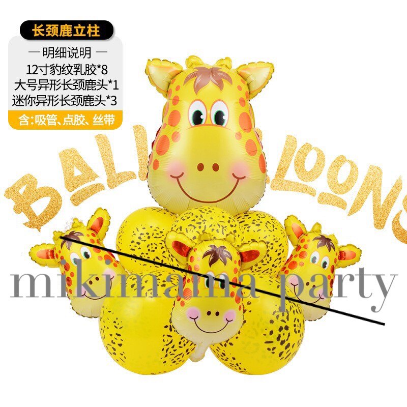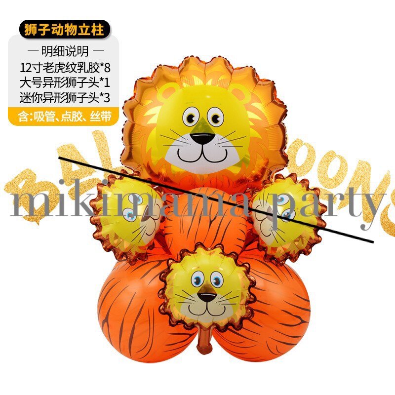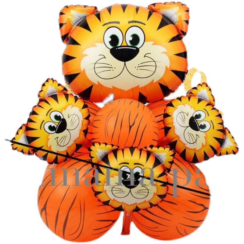 Korean Medium Animal Head Tiger Lion Aluminum Film Balloon Forest Children's Birthday Party Decoration Latex Set