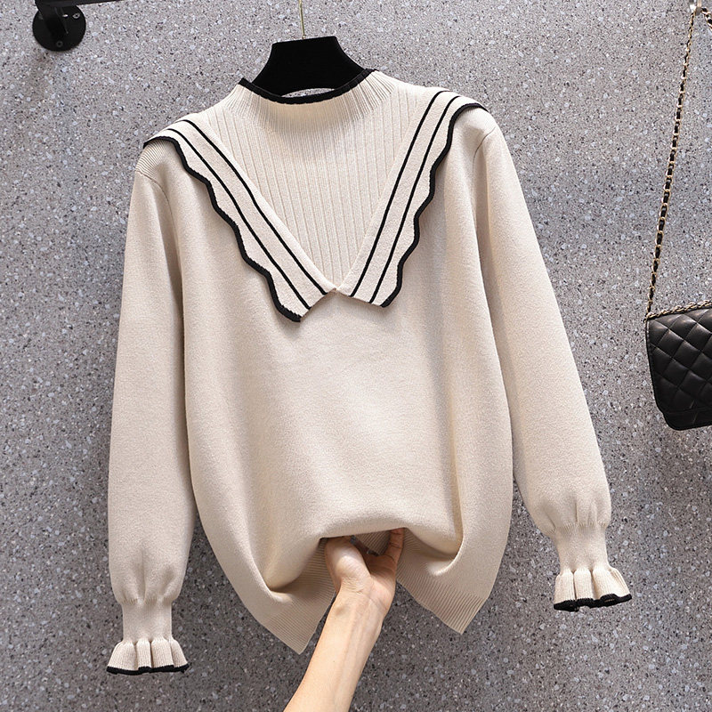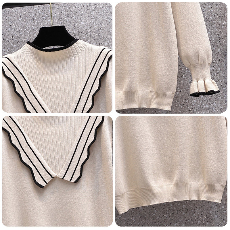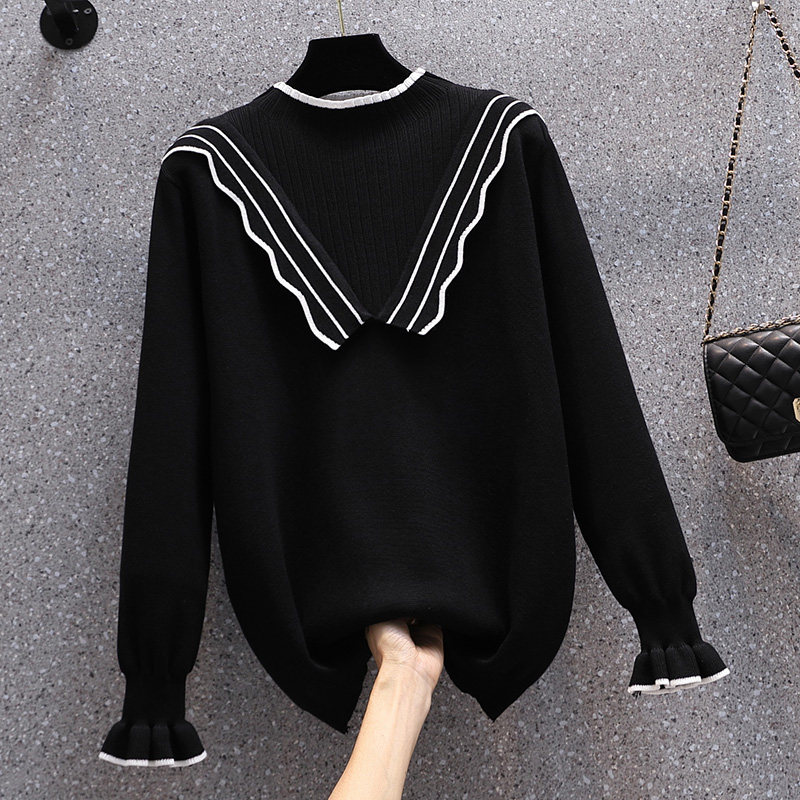 Ocean Gas Thickened Stitch Weaters 2023 Fall New Big Code Women's Dress Fat Sister Easy to Wear Sweaters Undershirt-Taobao
