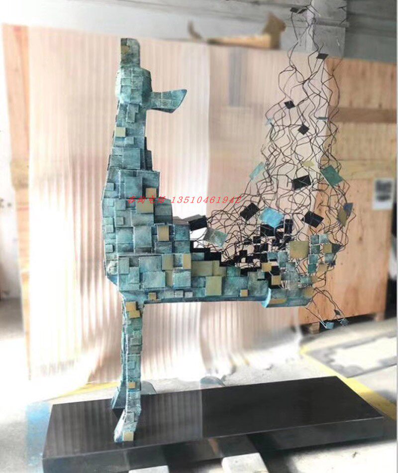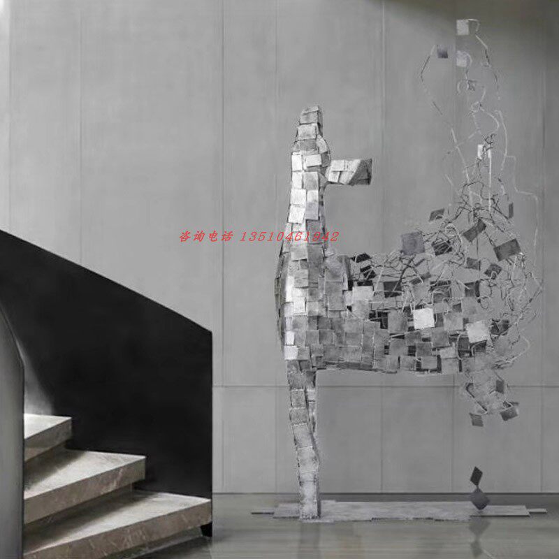 Stainless steel wrought iron minimalist creative animal sculpture hotel villa sales office hall metal square deer ornaments
