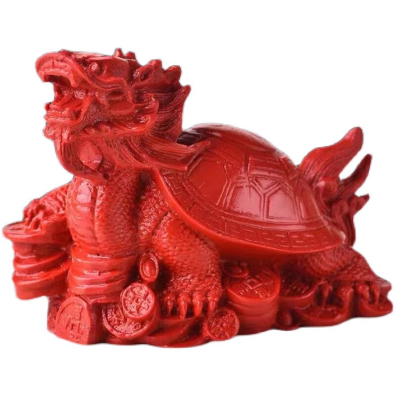 Natural Red Cinnabar Dragon Turtle Lucky Ornament Home Office Jewelry Set Table