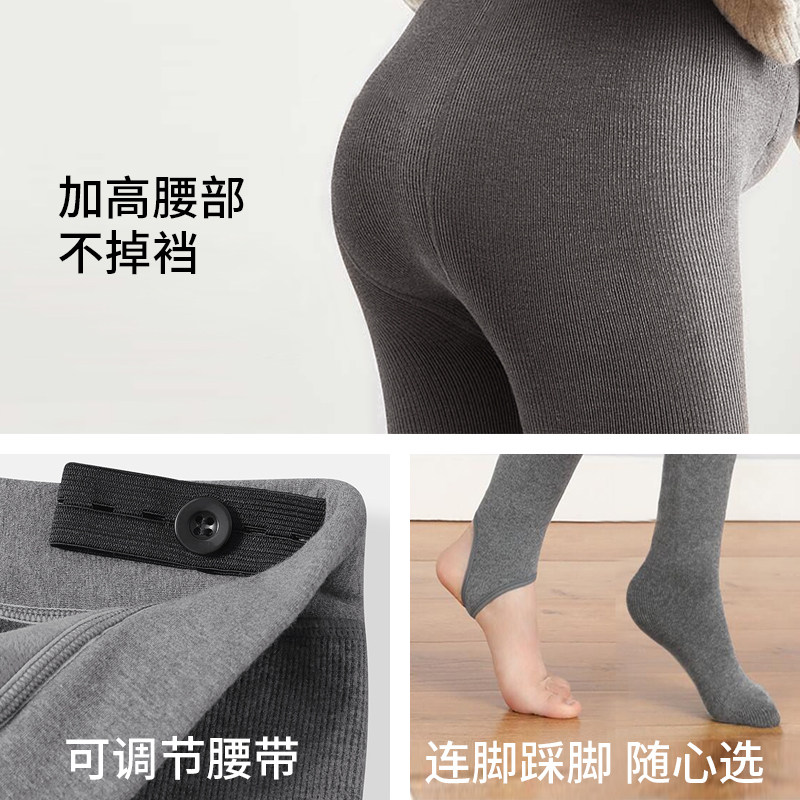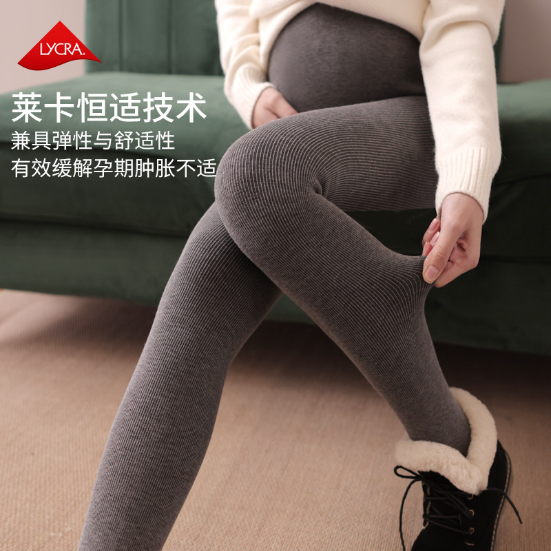 Pregnant women plus fleece thick bottoming pants autumn and winter wear vertical stripes rompers socks bottoming socks maternity winter clothes