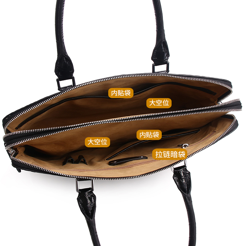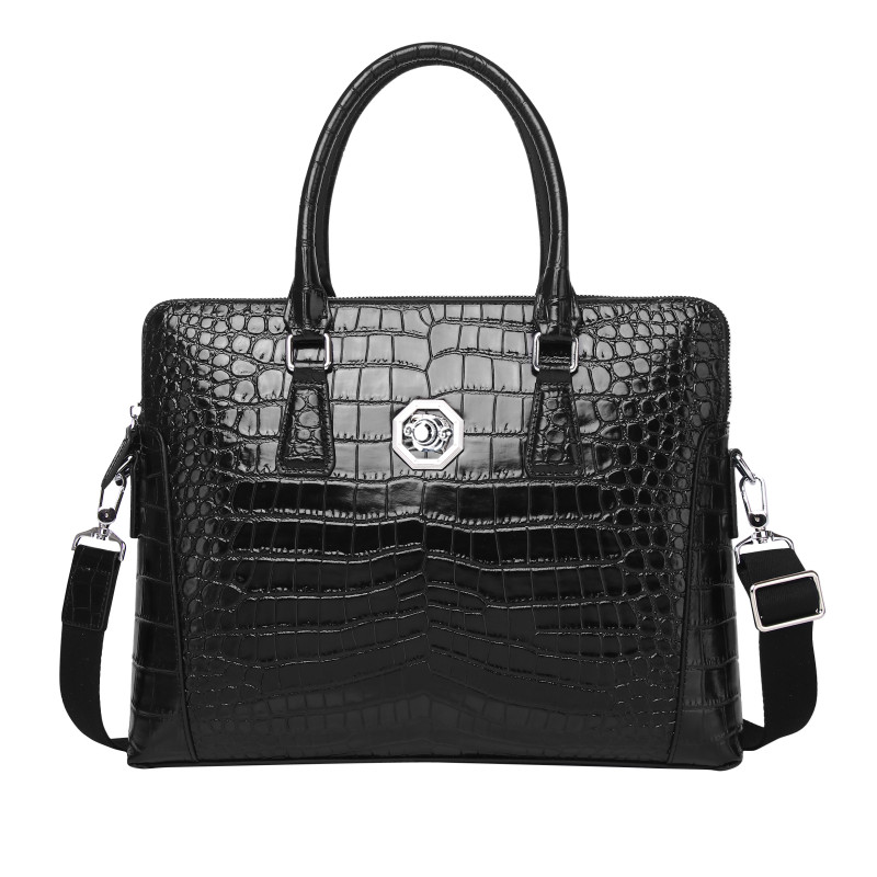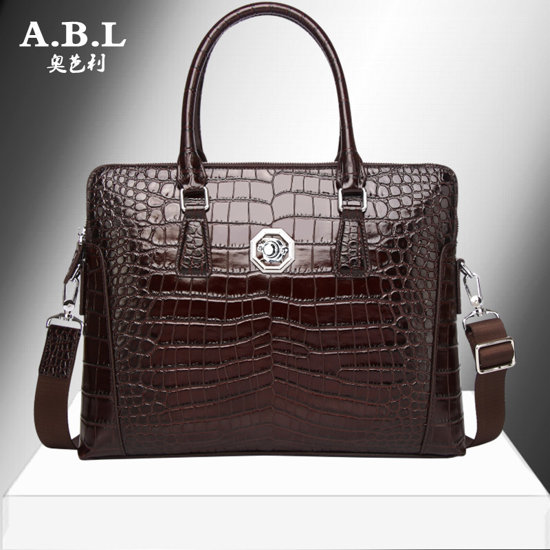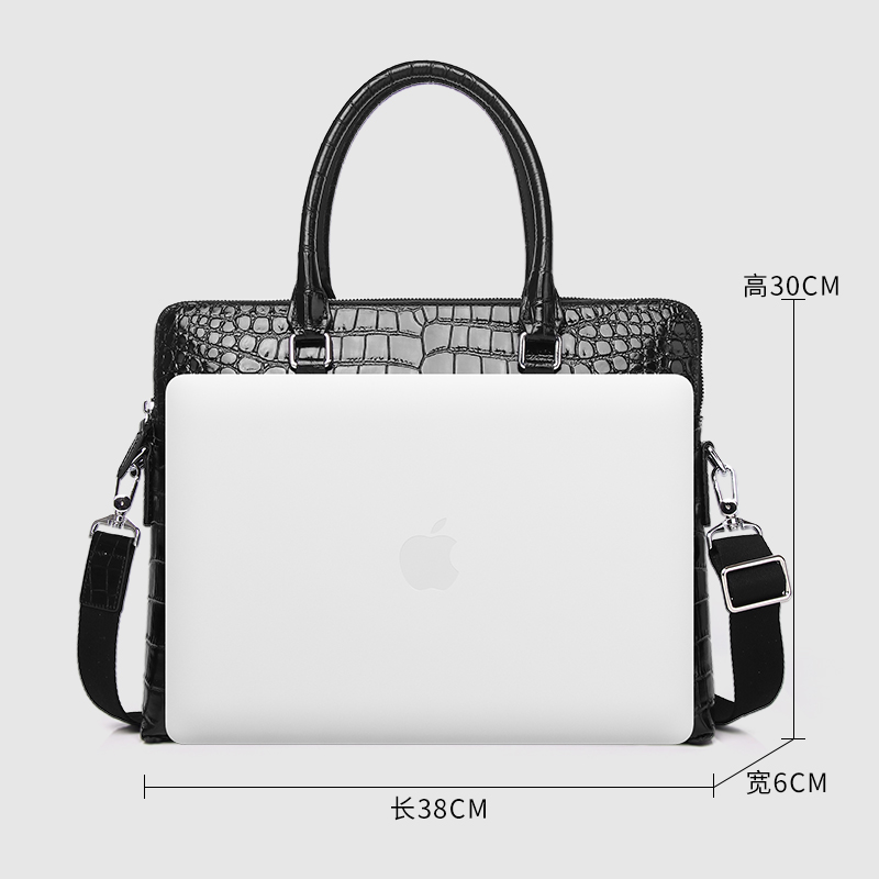 High-end handbag male genuine leather genuine leather trendy single shoulder bag new crocodile thread double pull chain black inclined satchel briefcase briefcase