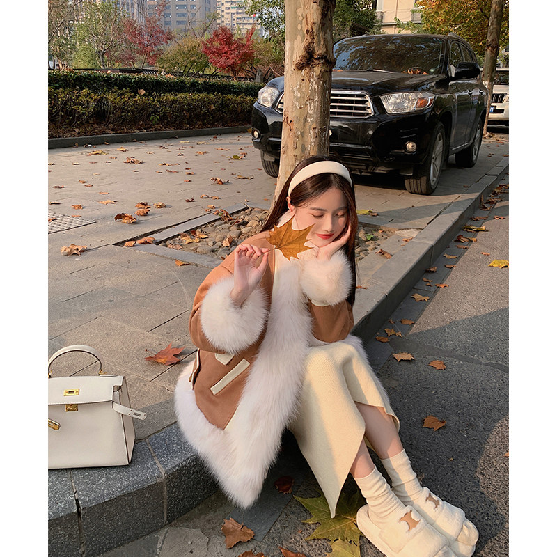Deris'Caramel Milk' 2022 new two sides wear fox fur coats young female