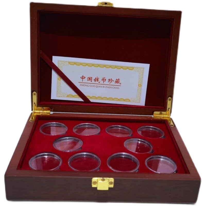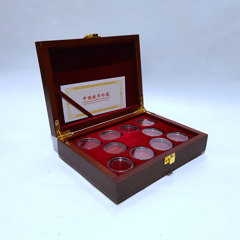 ten Loaded Large Wooden Boxes Commemorative Coin Collection Box Coins 5 Yuan Packaging Box Protection Box Coin Box