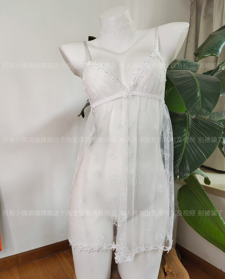 French Aesthetic Christmas New Year Lace Perspective Embroidery Water-soluble Flower Collar Sling Strap Backless Strap One-Piece Nightdress