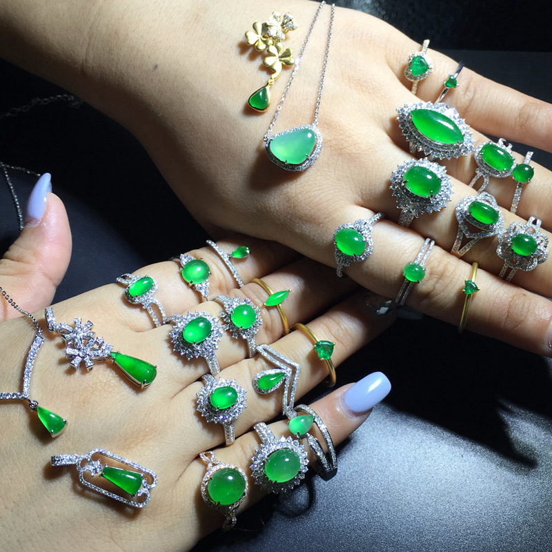 Ice bearing cube, green ring of Emperor Green egg face ring necklace bracelet ear crash inlaid