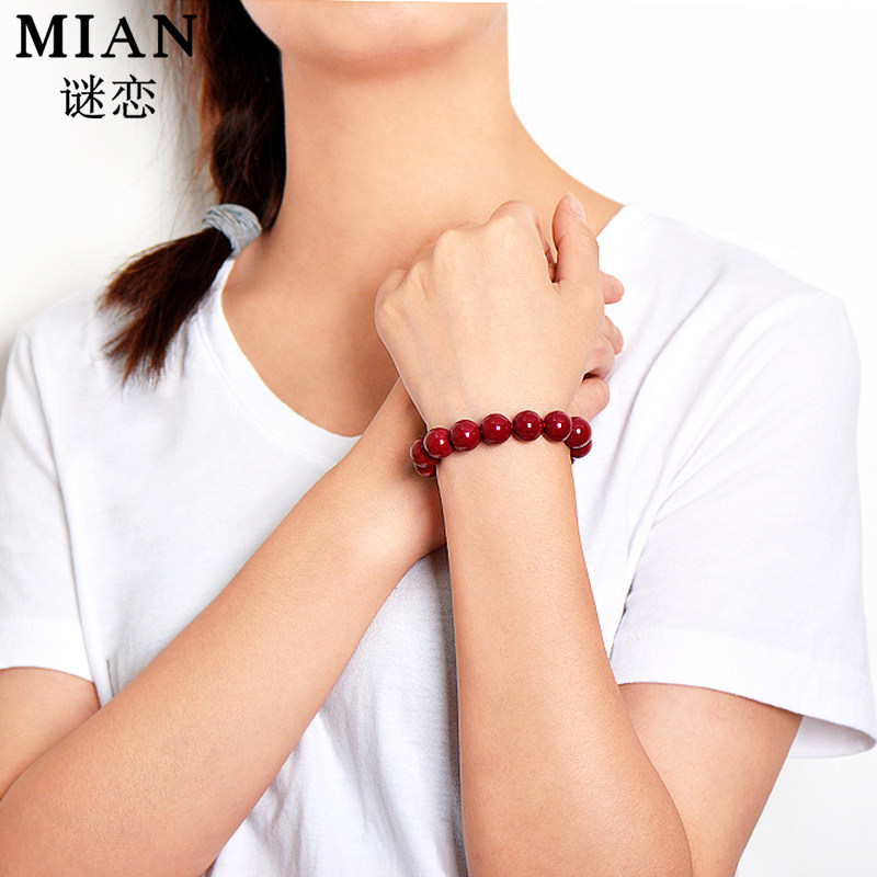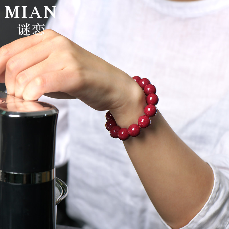 Collectible-grade natural cinnabar hand-held high-quality purple gold sand bracelet natal year red rope hand-held female natal chain gift