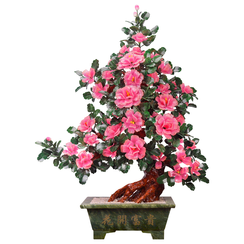 Natural Jade Sculpture Large Jade Peony Flowers Living-room Home Residence Decoration Pint Jade Floor Craft Gift Pendulum Decoration Bonsai Large Pendulum