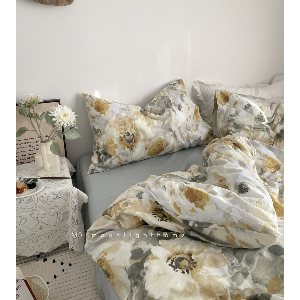 American Fields Garden Wind All-cotton Four Pieces Of Pure Cotton Linen Quilt Cover Covered With Hood Bed Gasawara Double Man Bed Accessories Three Sets