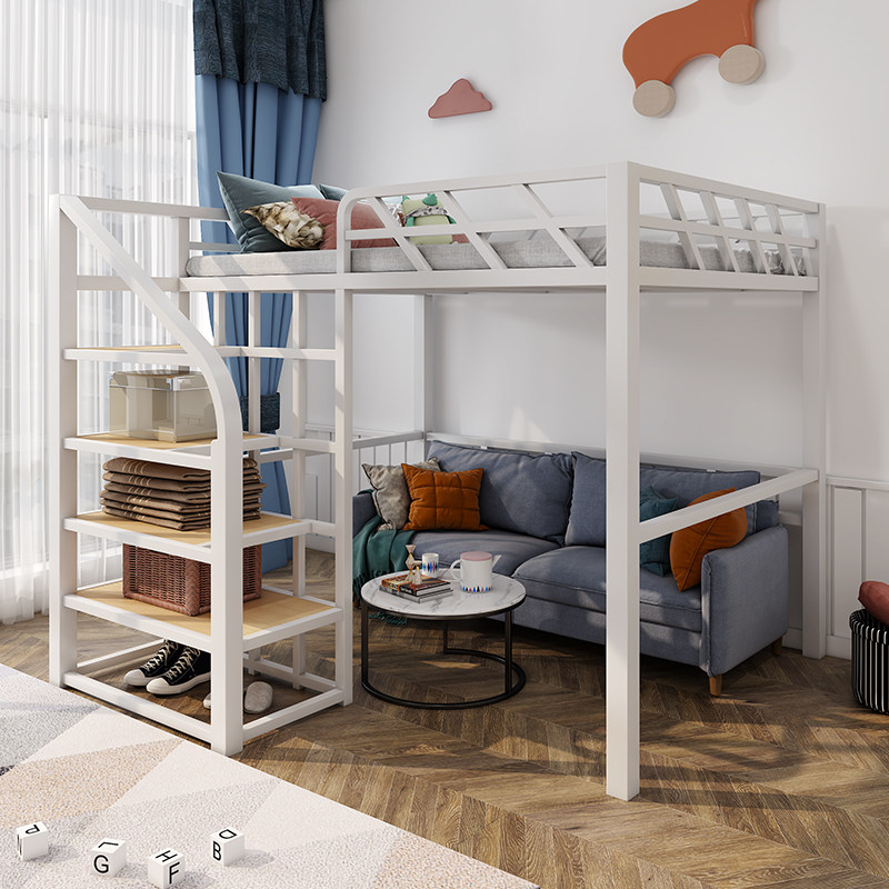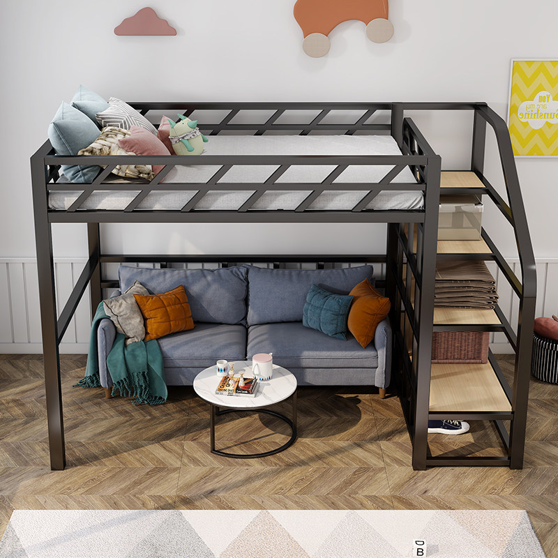 Iron art upper and lower bunk elevated bed small apartment household high and low bed space-saving double-layer children's adult upper and lower iron frame bed
