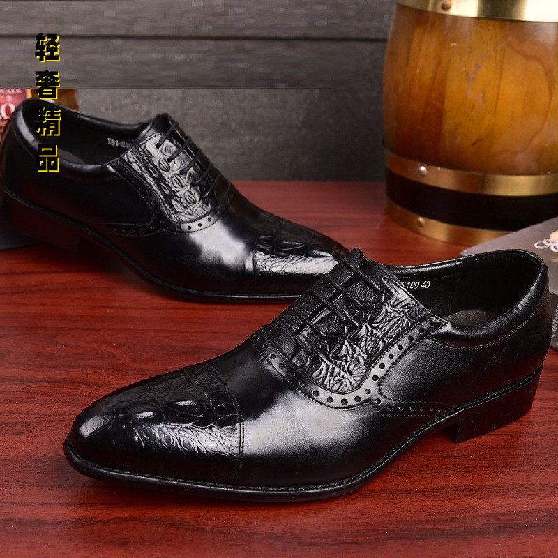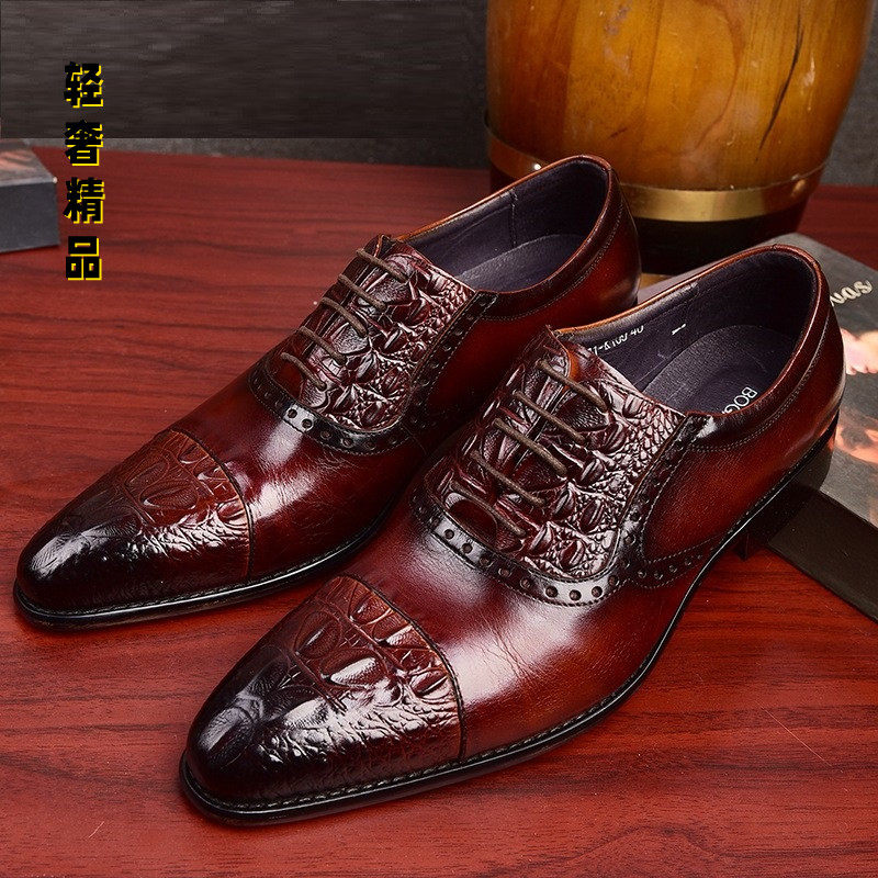 Pag Lietou Layer Cow Leather Crocodile Print Dress Leather Leather Shoes Manly Handmade Men's Shoes Fashion Inglén Business Casual Shoes