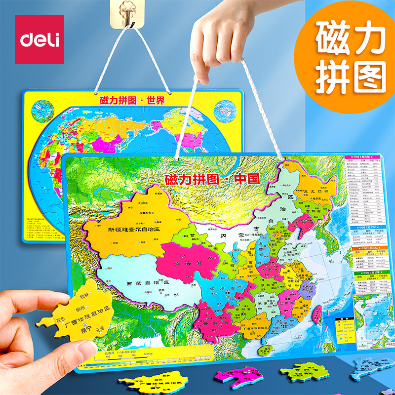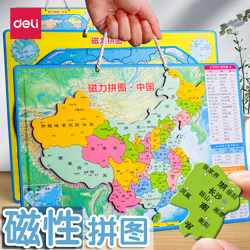 (full set of 6 pieces) The big Chinese world (send a magnifying glass globe map) (full set of 6 pieces) China World (send a magnifying glass earth meter map) Large number Magnetic China
