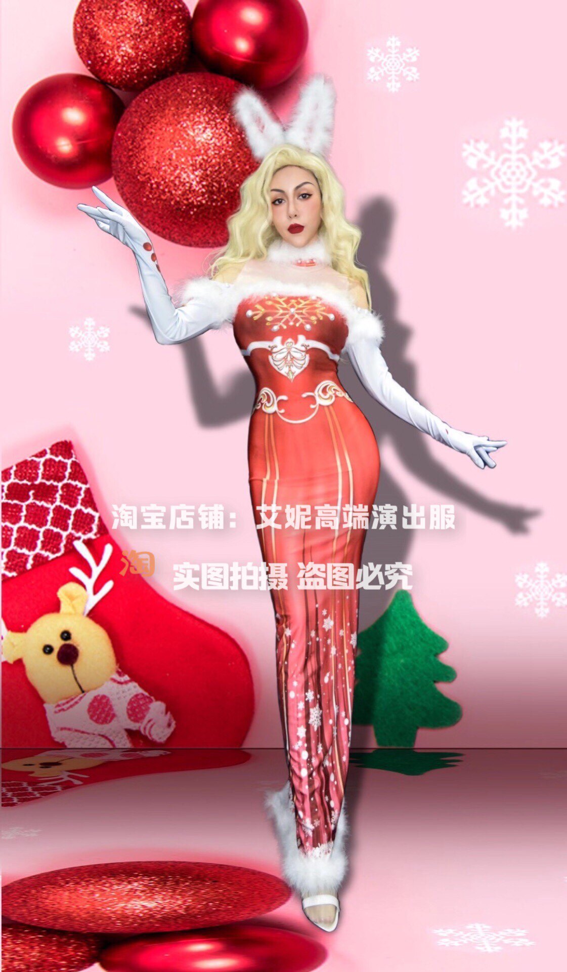 TT high-end nightclub bar singer djds dance team gogo Christmas rabbit female headdress dress dress suit