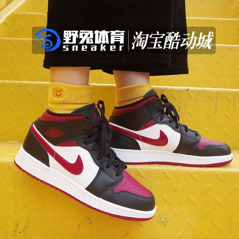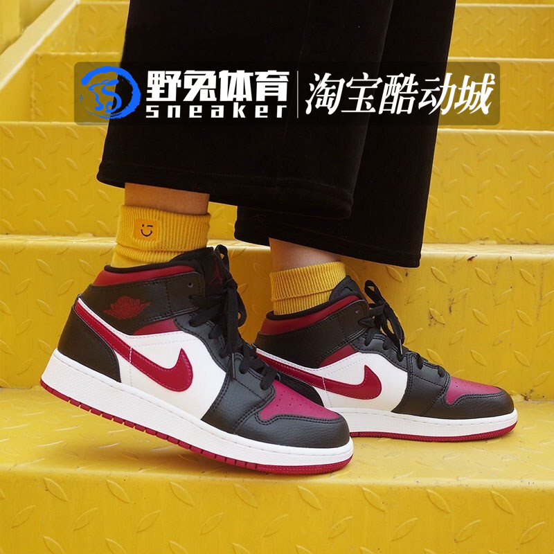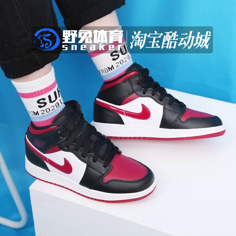 Air Jordan 1 Mid AJ1 middle help men and women black red toes 554724-554725-066-128