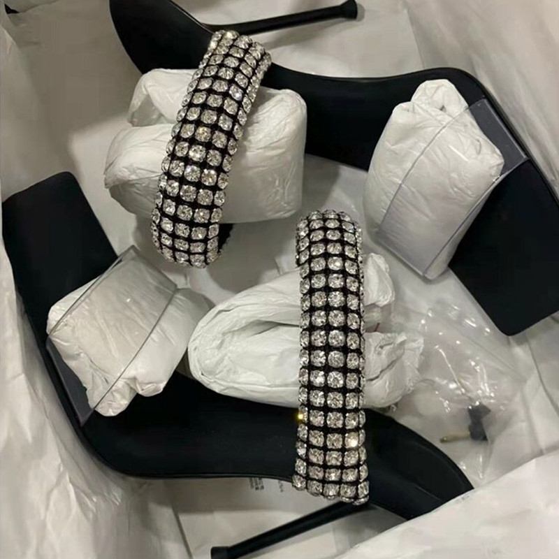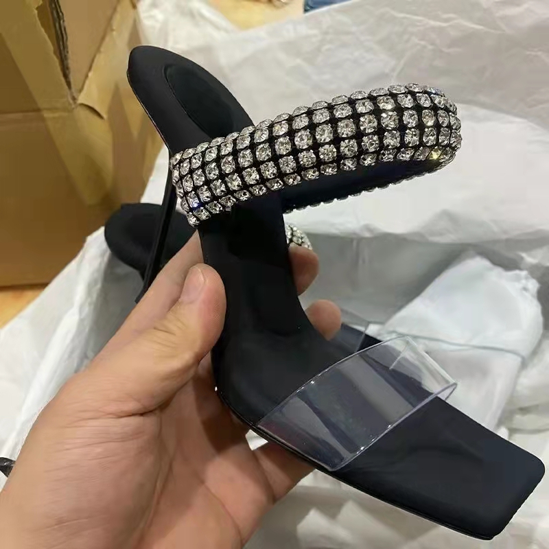 91W Fans Recommend Fashion Walking Show Transparency With Sandals Women's Water Drill Decorative Open-toe High Heels
