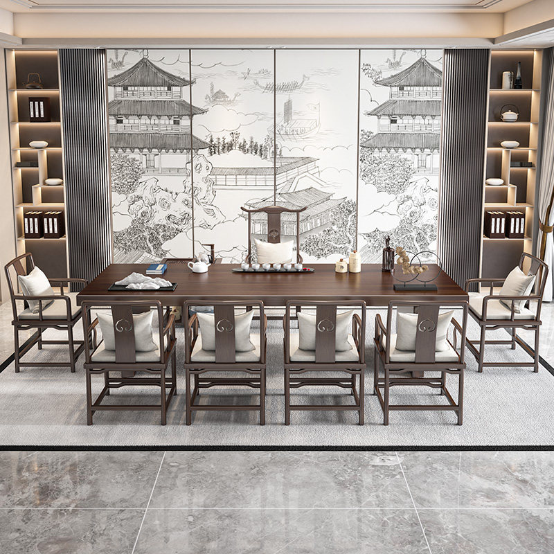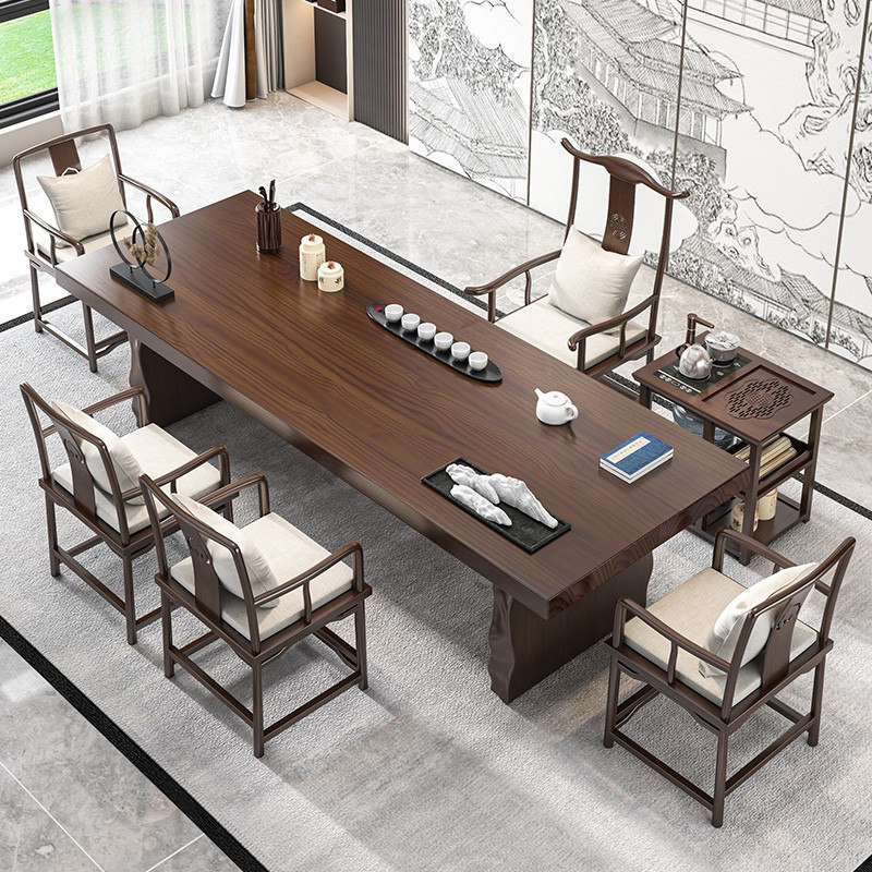 Log Solid Wood Large Board Tea Table New Chinese Meditation Tea Desk Home Living Room Bubble Tea Table Office Tea Table And Chairs Combination