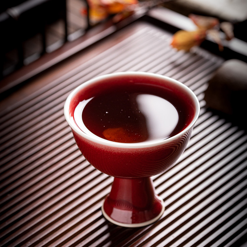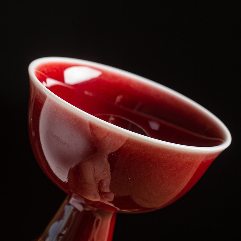 Jingdezhen Ronggla Red glass hand ceramic kung fu tea cup cup high foot swipe red single owner cup