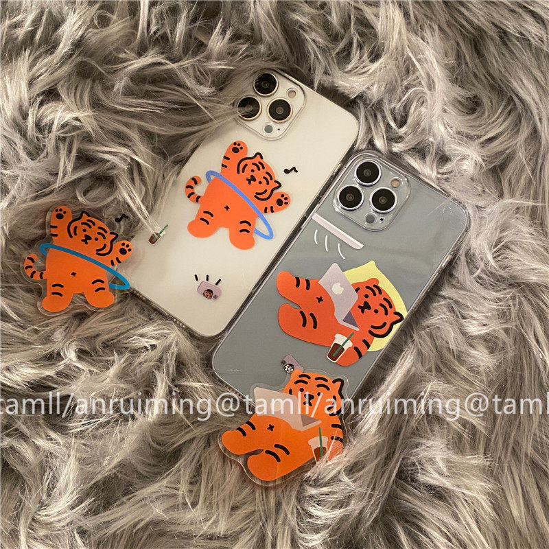 An Ruiming funny little tiger with bracket transparent suitable for iPhone13pro max apple 11 mobile phone protective case xr xsmax 8plus anti-fall iph