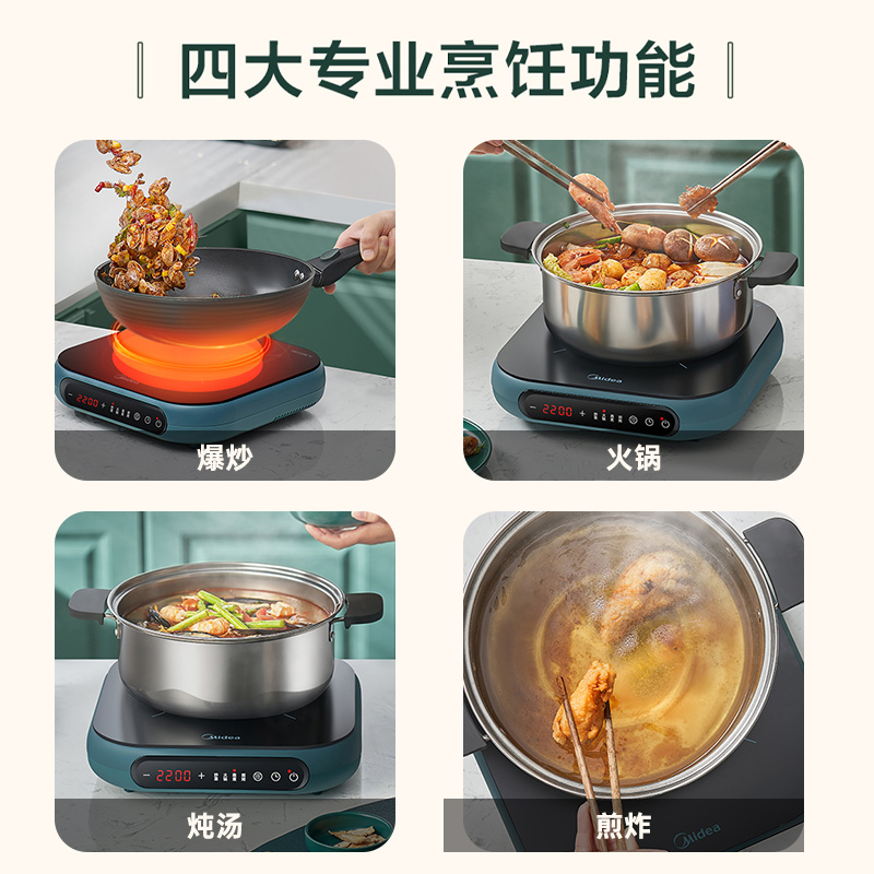 Midea induction cooker household multi-function battery stove small high-power energy-saving retro cooking hot pot new smart