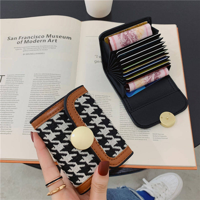 Niche Design Houndstooth Canvas Card Holder Coin Purse Female Short Large Capacity Multi-Card Buckle Long Clutch