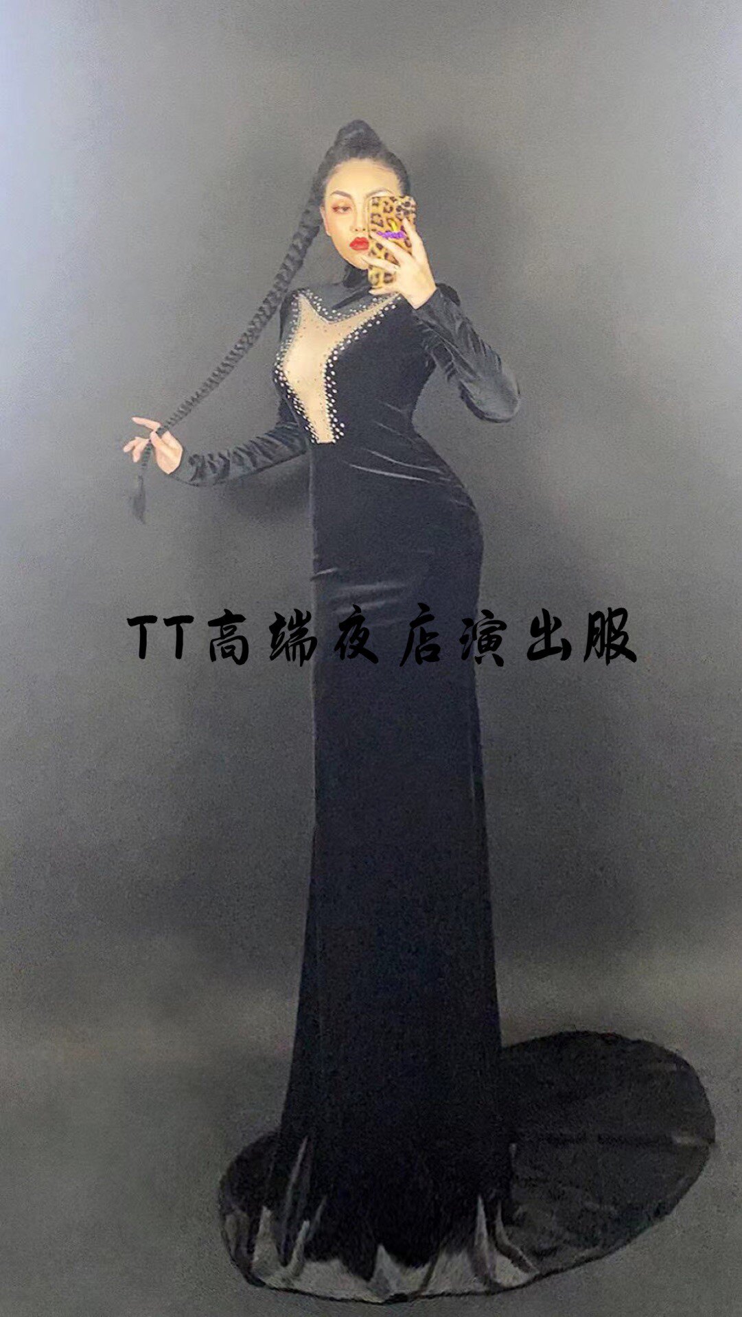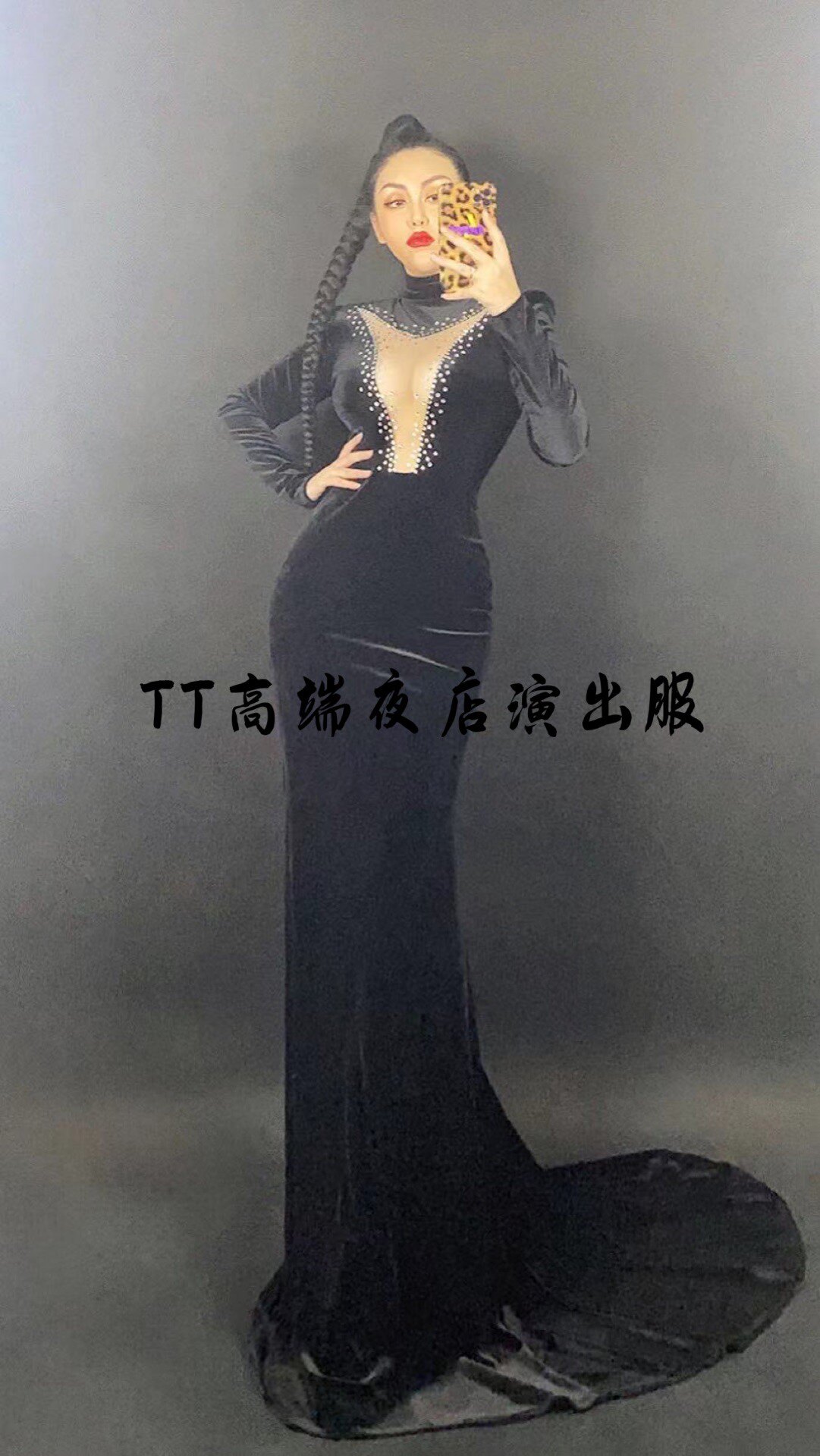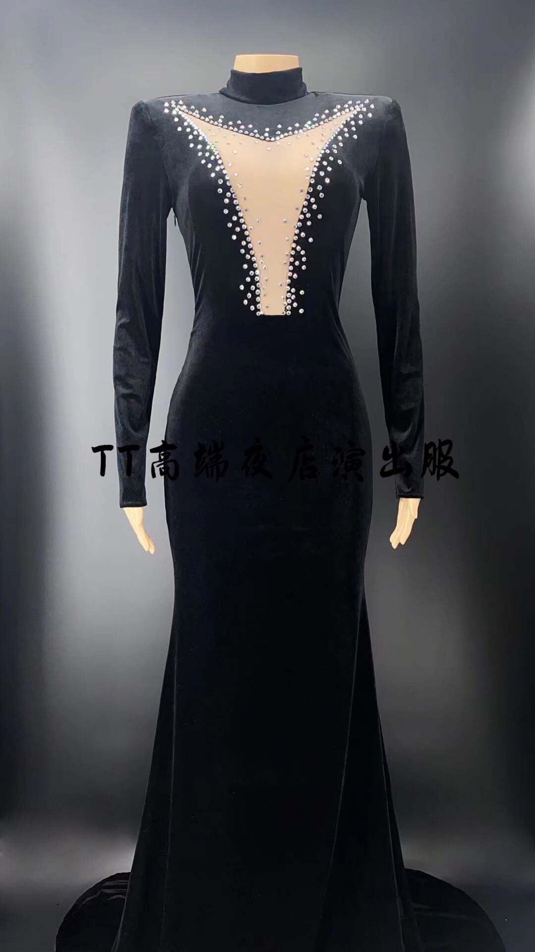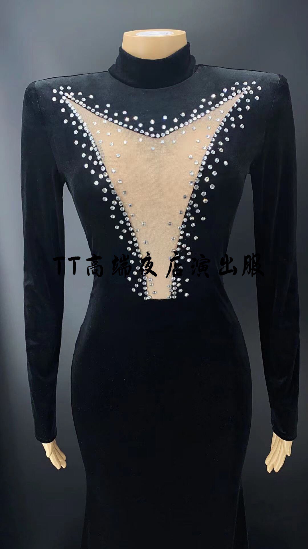 TT high-end custom nightclub singer ds sexy big V velvet dress