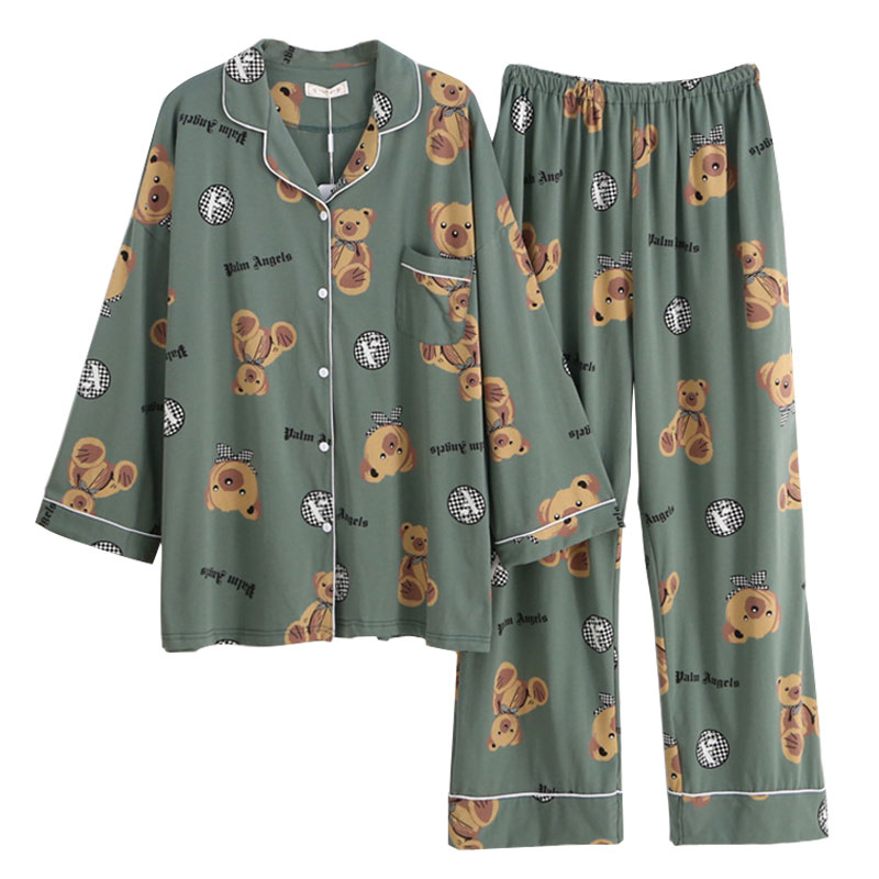 Spring and autumn large size pyjamas 200 catties of pure cotton open flap jacket Gats up fat mm pregnant woman suit 300 catty of family clothes