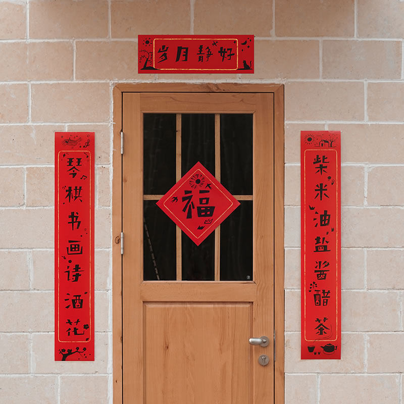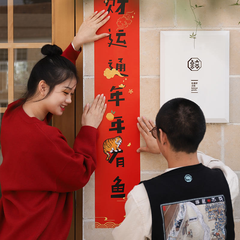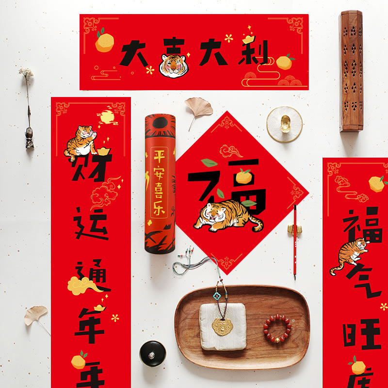 Couplets for the Spring Festival Home 2022 New Year decorations Hand painting Foeword Qiao relocating to the new Creative Cartoon Tiger Year Gate Spring Couplets