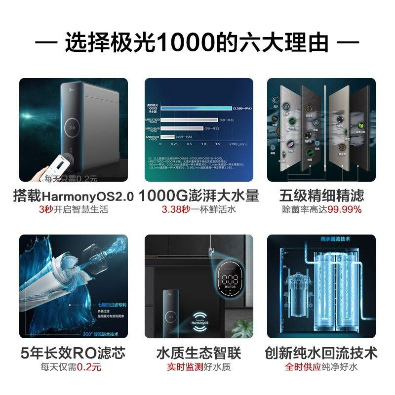 Midea water purifier home direct drinking water purifier RO reverse osmosis Aurora 1000G pipeline machine wall-mounted 902-D
