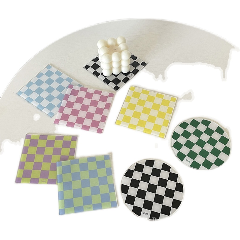 2 ins with ancient wind chessboard lattice retro cup cushion square round acrylic creative shooting props