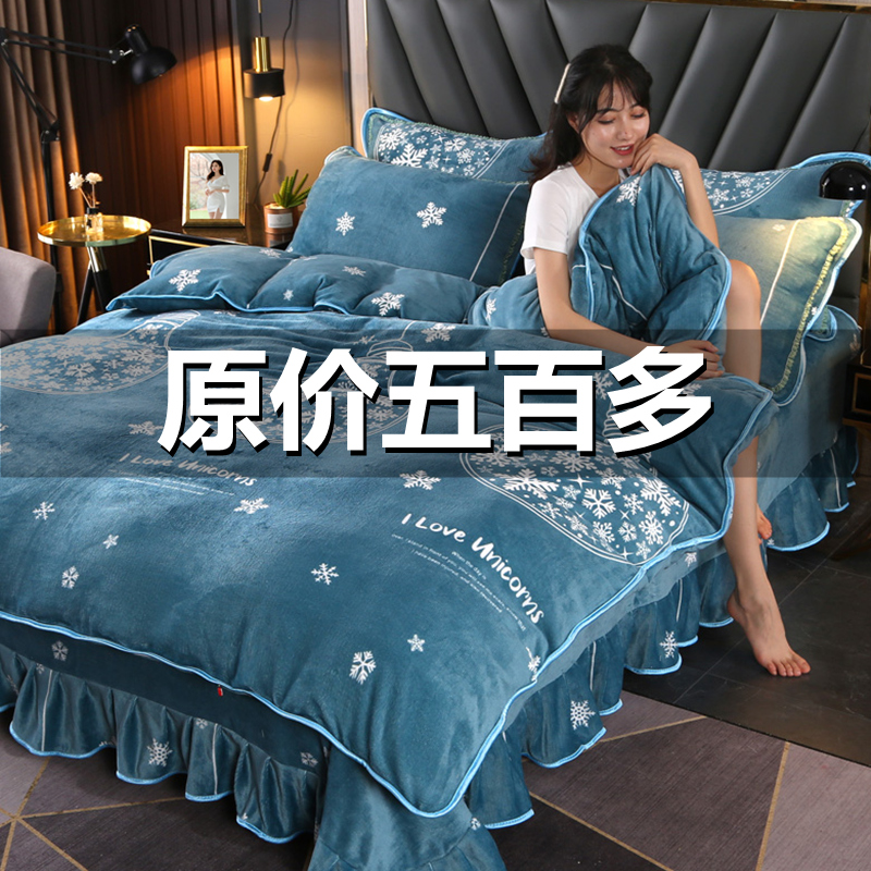 Winter hot sell Anti-static milk suede beds Four pieces Thickened Coral Suede Bed Linen Quilt Cover Napped Sleeping Special Price