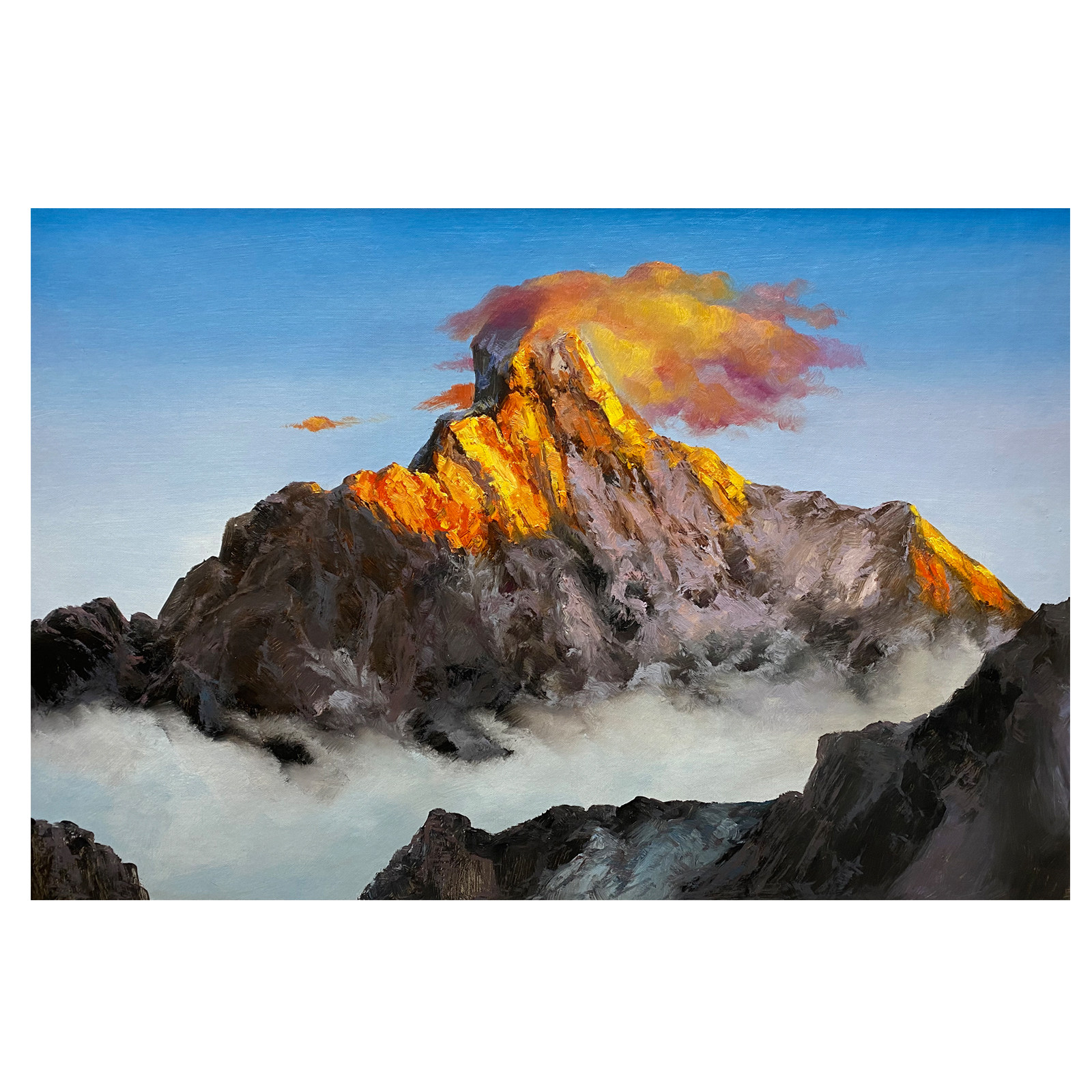 Tong Derecorded "Jinshan Xiangyun" Realistic Cloth Surface Oil Painting Living Room bedroom Decorative Painting Collection Pure Hand Painting