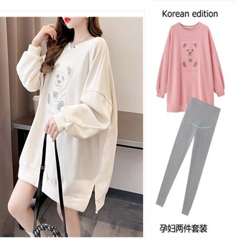 Plus Mast Size Pregnant pregnant women's clothing suit Spring and autumn clothes 200-300 catties Outside Wearing Blouse Fashion style Open Fork T-shirt Boomer