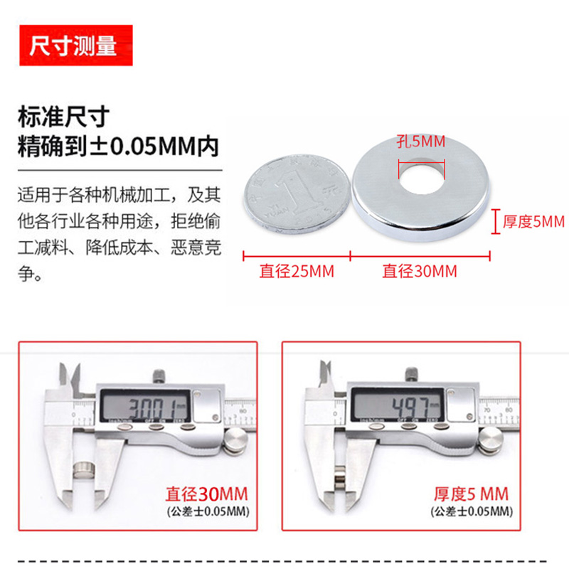Ring-shaped magnet strong magnetic force high-strength rubidium neodymium iron boron with hole magnet straight hole size magnetic ring can be customized