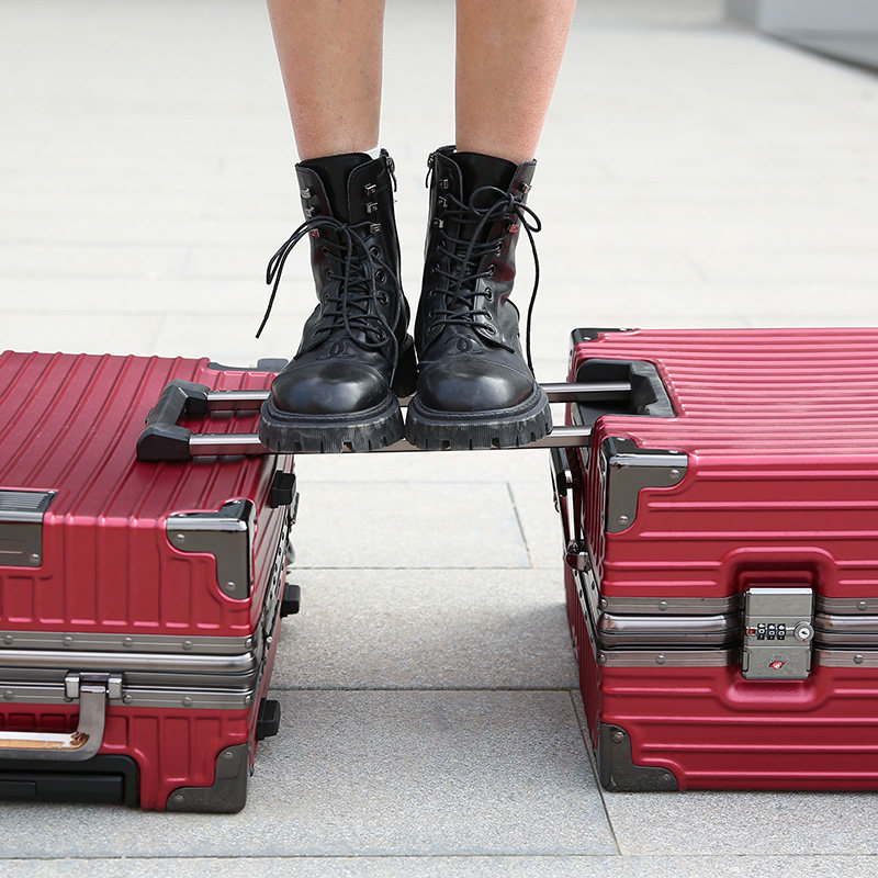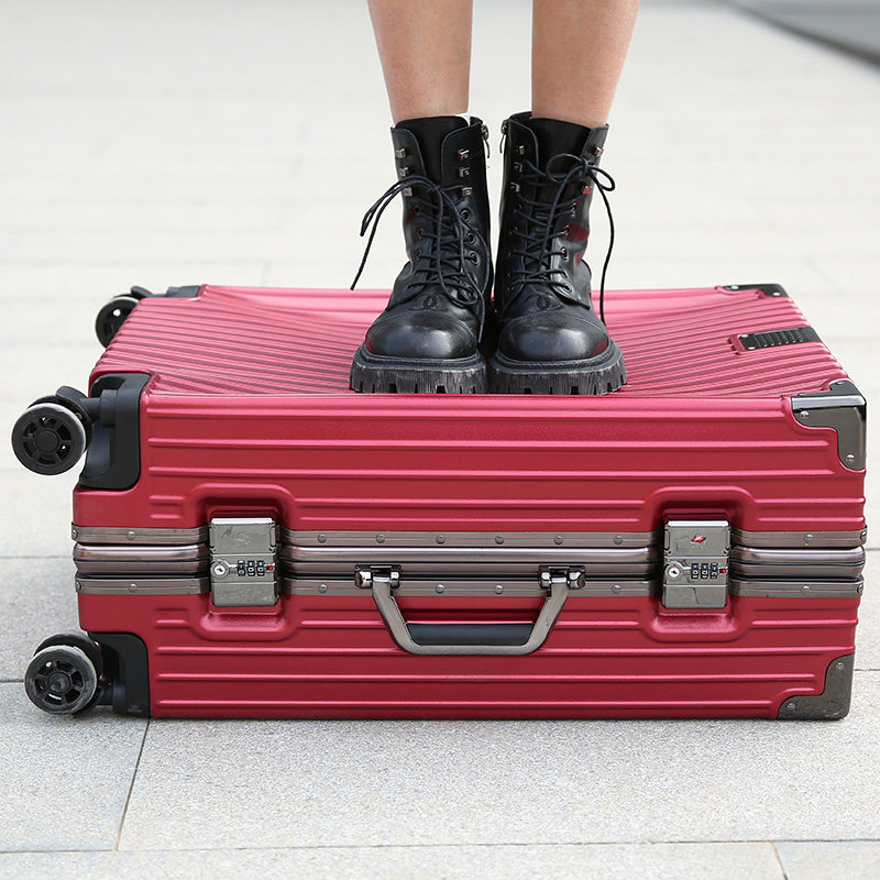 Wine red wedding dowry box female bride dowry suitcase wedding leather box password box aluminum frame luggage