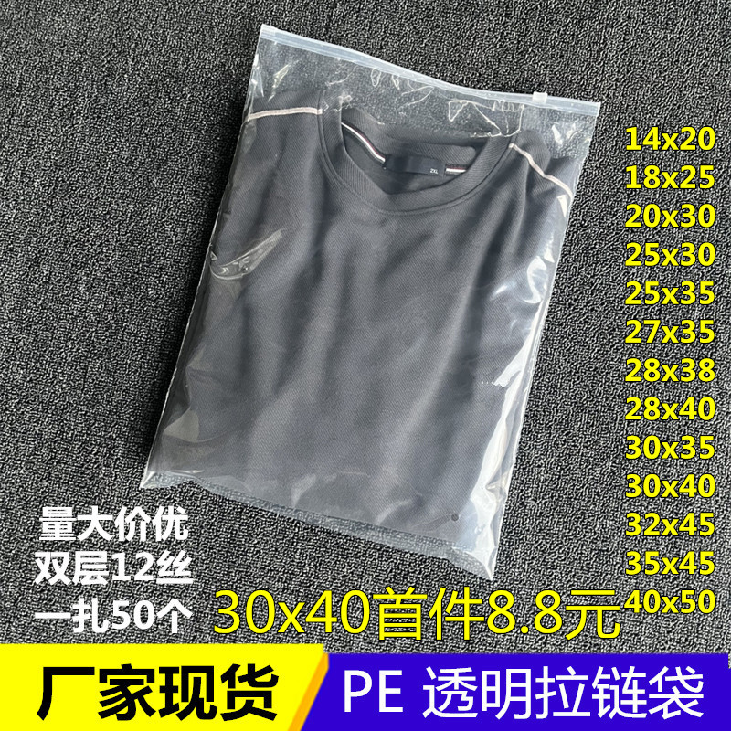 Transparent clothing zipper bag thickened clothing bag to collect self-sealed plastic bag custom logo printing 30*40
