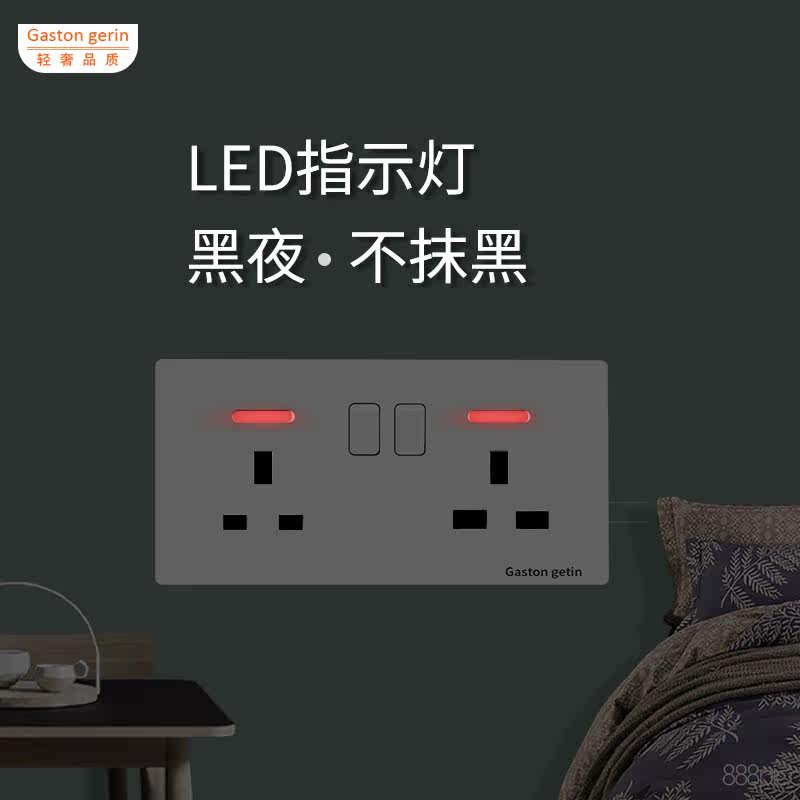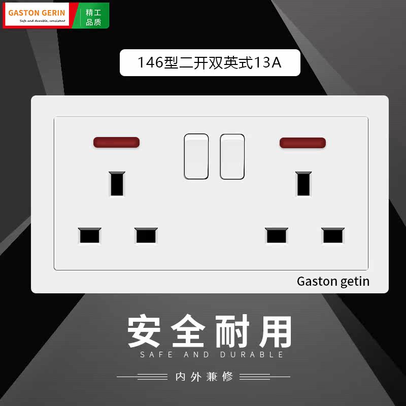 Type 146 dark port English 13A square three - hole switch with two - open square foot of the English - standard three - hole six - hole socket panel